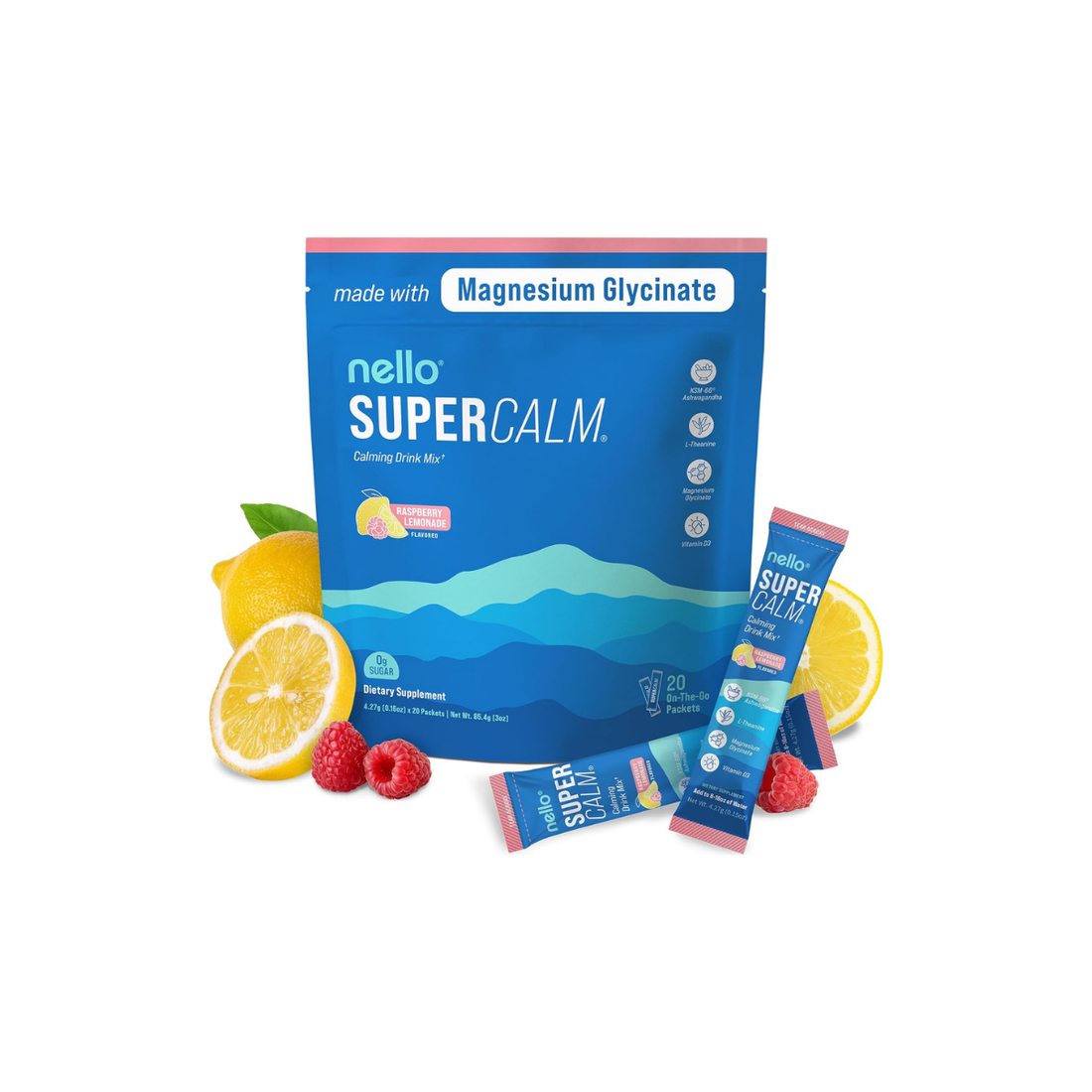 Supercalm Powdered Drink Mix, Raspberry Lemonade, L Theanine, Ksm-66 Ashwagandha, Magnesium Glycinate, Vitamin D 3, Supplements for Relaxation & Focus, No Sugar, Non GMO, on the Go, 20 Ct
