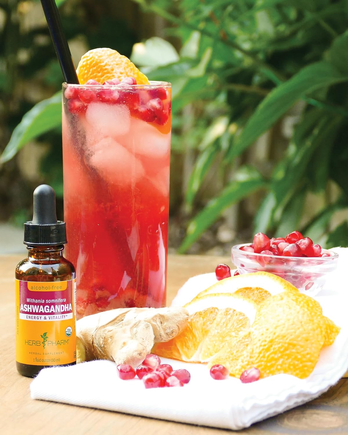 Herb Pharm Organic Ashwagandha Liquid Extract, Alcohol-Free: Mood Support Supplement, Vegan Ashwagandha Root Glycerite, Tasty Non-Bitter Adaptogen Extract for Adults, Non-Gmo, 1 Oz