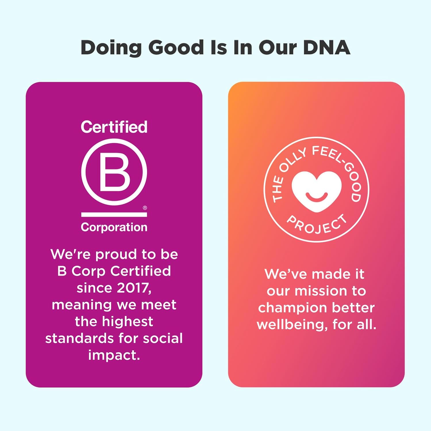 - MORE OLLY GOODNESS: We create products that are just as effective as they are delicious—gummies, multivitamins, drink powders, premium softgels and more ways to feel happy inside out